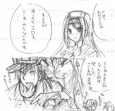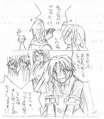 というわけで、チケットゲットまでで思いついちゃったこと。 続いて列車からダイブです。 グレッグさんめんこい。ディーンの脚力凄い。(いや、でもみぞおちなら相当痛い。泣く。) アヴリルを迷わず助けたディーンは間違ってないです。 それだけレベッカを信頼してた証だと思うし。 ただ、信頼しすぎて、気づいてやれないのが悲しいですね……(TVのときを思い出す……)。 トニーじいちゃんとの約束を護ってる、のもあると思うので。 1周目のときは「俺の最大限の~」がかわいいなあ!と思ったのに、意外と今回はひっかからず。 むしろそのあとのモノローグでほろりときました。 グレッグさーん! あと「こんなオトコは初めてだ」発言に微妙にどきどきしてしまった……初めてのオトコ……!!(帰れ) グレッグさんの初期装備はコメットマーク。 彗星トカバッジの効果トカより先に、コ○ットさんなグレッグさんが……。 新しいアニメ版のほう。(というか旧は見たこと無い) それにしても、このときのグレッグさんはとっても見事にツンです。 後々の、めっさ親切なひととの格差を思って、貴重なツン期を堪能(ウットリ)させていただきました。 ごちそうさまです。 しかし、「勝手にしろ」はともかく、「……好きにしろ」は危険な発言だと思います。 いいの?好きにしちゃうよ? 充分好き勝手にさせていただいてますが。(ごめんなさい、だいすきです) 「なにかかなしいことがあったのですね」と、アヴリルとグレッグの会話がありますが、もうあのあたりってものっそい二人の世界じゃないですか。そらグレアヴが流行るわい、という感じ。大人の魅力ですね。 しかし、それよりも「アヴリル様、腹黒……ッ!」なんて思ったあたりで間違ってる。 切なくなろーよ。 でも、このあたりの会話や、その前のループを匂わすところらへん、あんまり切なくはならないんですよ。 と言う前に、らくがき2号。 どっちかと言うと、今、幸せだからいいかな、と思えて。 「はやくいきましょう、レベッカ」はたまりません。アヴレベにしか見えません。どうしよう。 ゴウノンは端折ろうと思ってたのに、ギャロウズが……!! バスカーの人なんだなあ、もしかしてかなりいいとこの坊ちゃんなんじゃ……!!と思うと、もう!! 忘れがちですが、3で一番好きなのはギャロウズですよ。ほんとですよ。 ユウリィもかわいいです。きゅん。 そして、墓場ではついにアヴリル様までAIR。(のような気がした) 排斥されし隔壁。 なんで願い事のシーンを削るのじゃ……!!(シナリオ本) そのあとのケンカするディンレベと羽入語をしゃべるアヴリル。(羽入語?) やっぱりこのゲーム、ディンレベにしかみえません。 ちょっとぷんぷんしすぎ、と思わないこともないんですけどね、でもそういうのも全部ひっくるめてかわいいんですよ、レベッカは……!!(末期) で、ついにキャロル登場。 ここで泣きが入る私の涙腺。 や、いじめませんか?って怯えるキャロルがめんこいと同時にかわいそうでねー……。 その後、どんどん強くなっていくんだからすごい。 たまらん。 レベッカがものすっごく気をつかってるのが更に……!! おお、私をこれ以上どうする気だ!かわいい!萌えるとかそんなんじゃなくて、二人ともほんまかわいい! 今ならわかります。 「私が全部悪いんです」って言ったキャロルの気持ちも、そうじゃないって言ってくれて嬉しかった気持ちも。 この子もどんだけ自分を責めて生きてきたんだろうとか思うとすっごい切ない。 二手に分かれて、合流したあと。